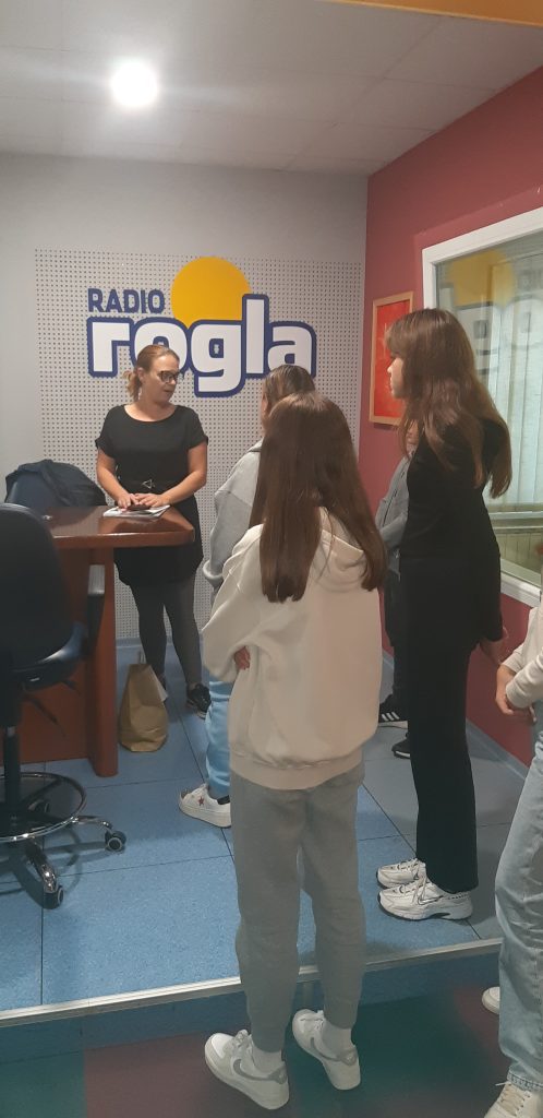 novico. Ogledali smo si še radijski studio in videli profesionalno napovedovalko pri