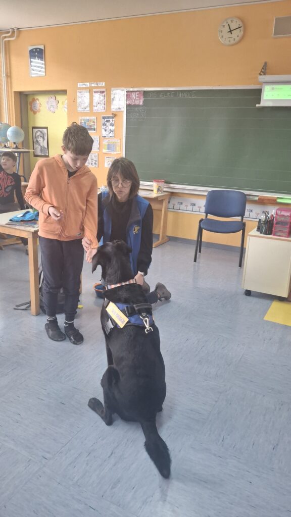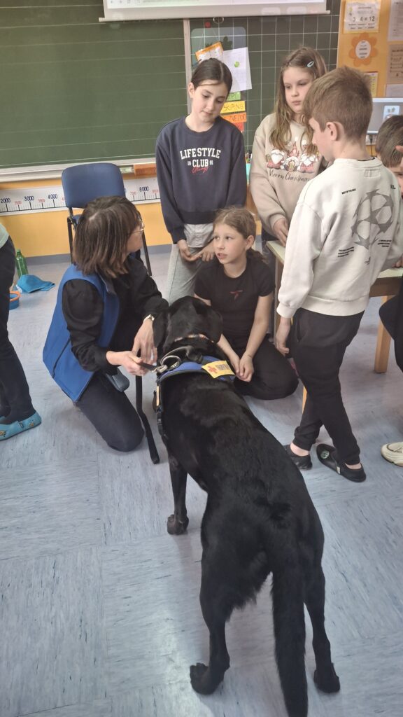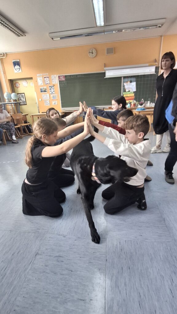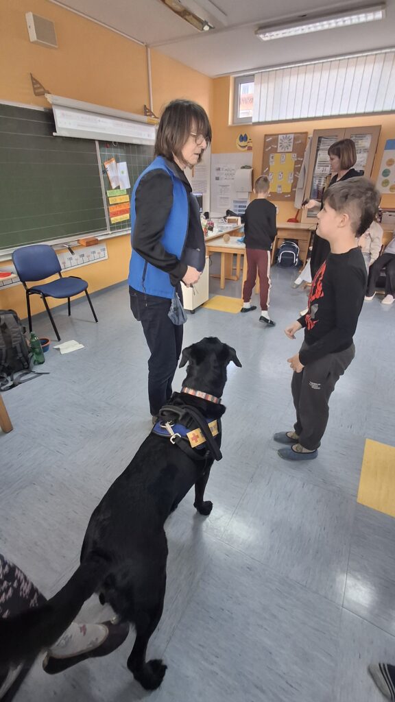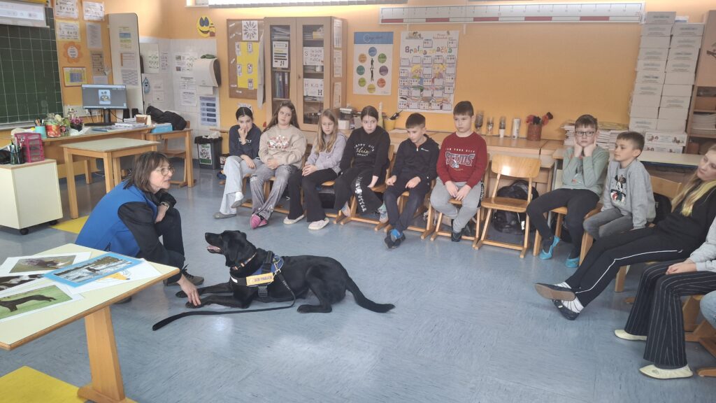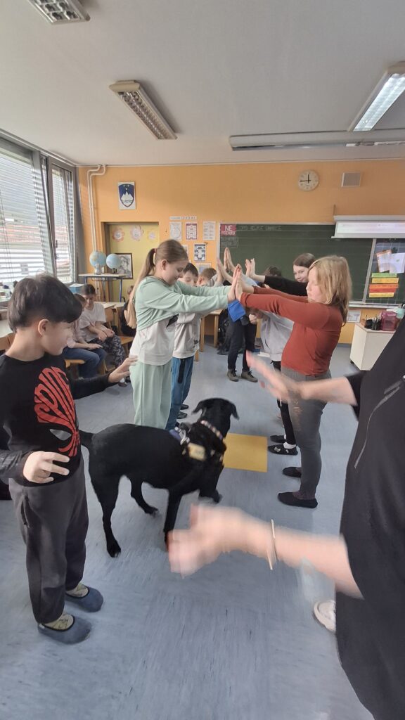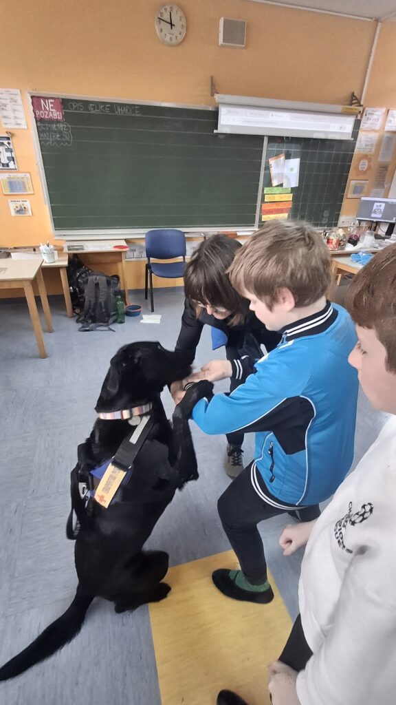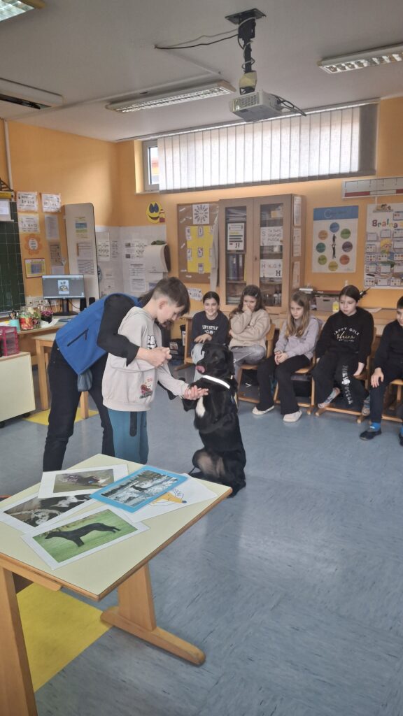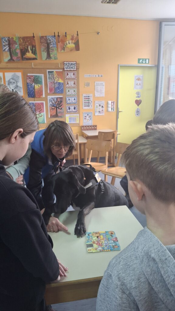Včeraj, 12. 3. 2026, smo imeli na naši šoli prav poseben obisk. V 4. a razredu nas je obiskal terapevtski par, ga. Janja Brglez in njena psička Luna, ki sta vključeni v prostovoljno društvo Tačke pomagačke. V uvodu ure smo spoznali pasji bonton, kako se primerno približati psičku, kako ga pobožati in zanj ustrezno poskrbeti. Luna je zelo prijazna, igriva, radovedna in delovna psička, zato smo jo lahko pobližje spoznali, jo pobožali in z njo izvajali trike. Pri urah slovenščine opisujemo živali, zato je bil obisk več kot dobrodošel. Učenci smo spoznali različne pasme psov, opisovali živali in urili spretnosti branja in pripovedovanja. Ugotovili smo, da je pes čudovit prijatelj pri branju in usvajanju snovi, saj pomaga pri sprostitvi, pozorno posluša, ne sodi, kritizira ali se smeji kot vrstniki in dovoljuje, da beremo in se učimo v svojem lastnem ritmu. Psi razveseljujejo, opogumljajo in motivirajo, zato bomo psičko Luno z veseljem povabili, da sem nam pridruži še pri kakšni učni uri.