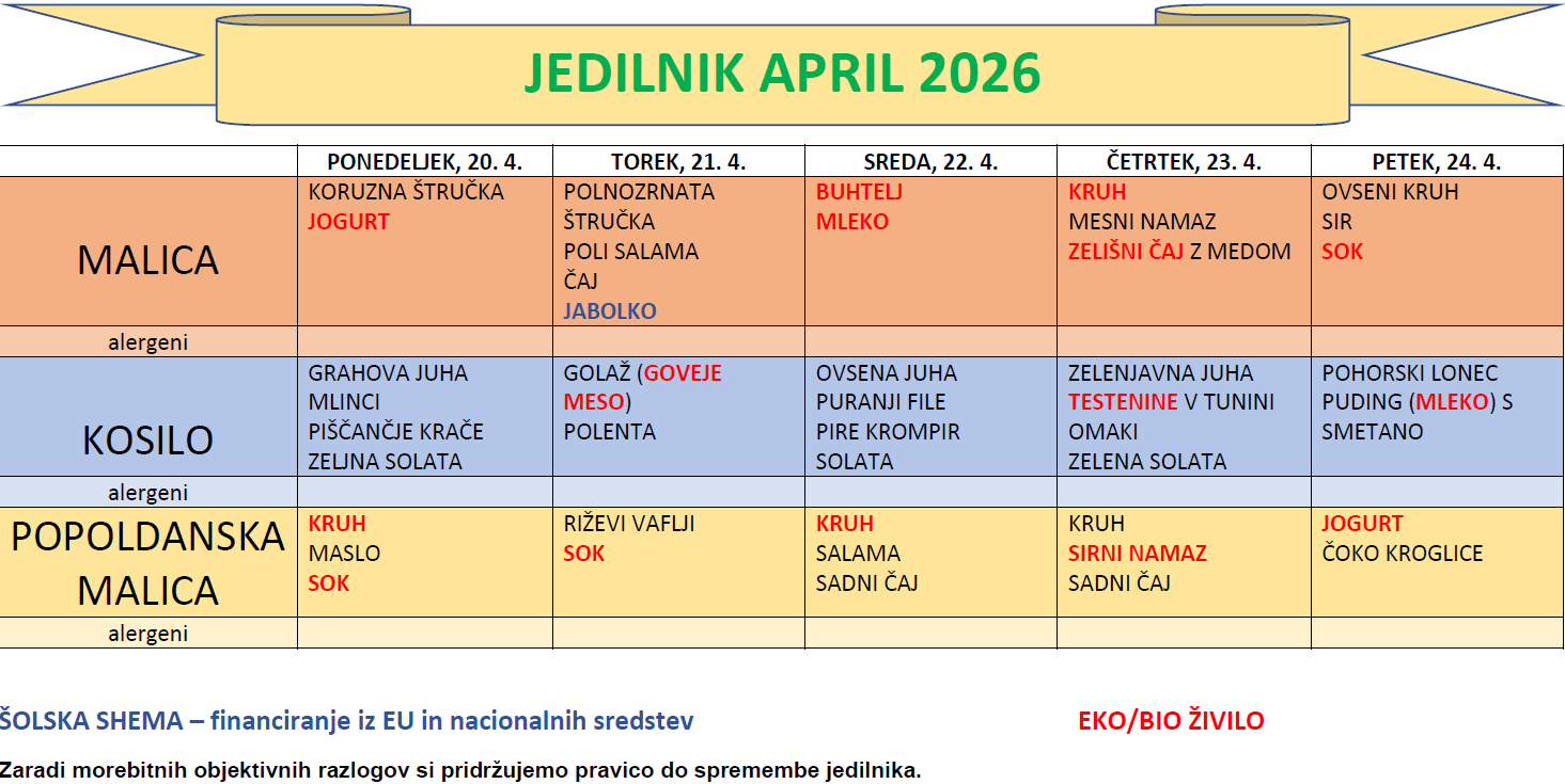JEDILNIK APRIL 2026