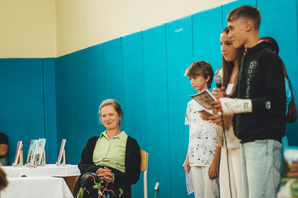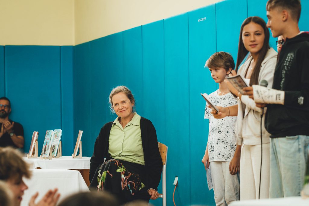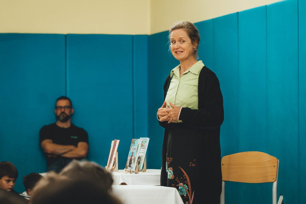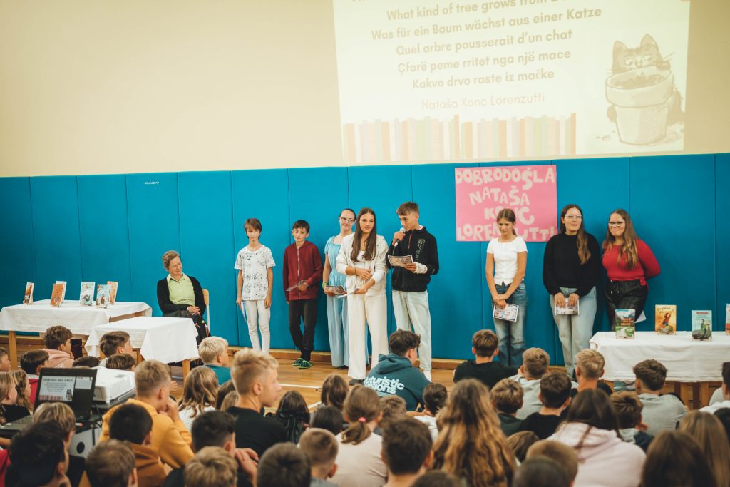 Dogodek smo obogatili s posebnim darilom – eno izmed njenih zgodb so učenci prevedli v jezike, ki jih govorijo na naši šoli. Tako je zgodba hkrati zazvenela v slovenščini, angleščini, nemščini, francoščini, albanščini, srbščini in ruščini. Projekcija izvirnega besedila in prevodov je ustvarila čudovito večjezično izkušnjo, ki je še posebej poudarila pomen evropskega dneva jezikov.