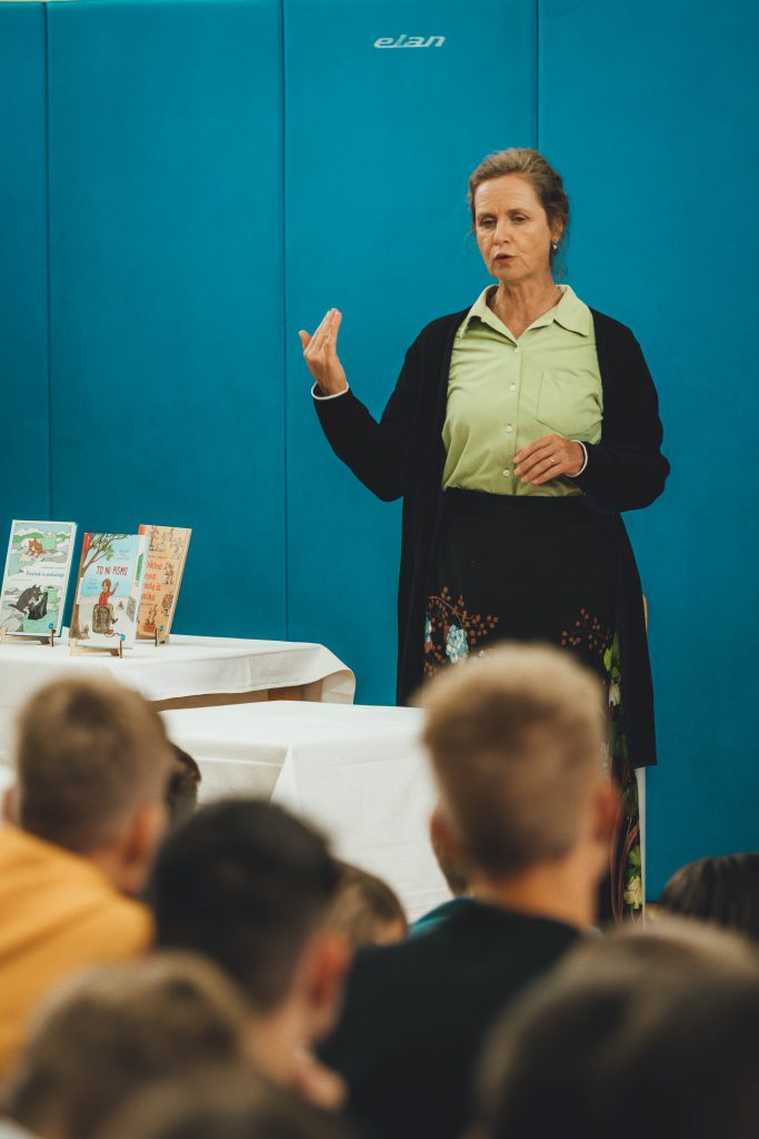 Praznovanje dneva jezikov na OŠ Ob Dravinji je letos sovpadlo z obiskom priznane slovenske literarne ustvarjalke Nataše Konc Lorenzutti, ki s svojimi deli navdušuje mlade in odrasle bralce. Predstavila nam je svoja literarna dela in ob tem spregovorila o lepoti jezika ter pomenu branja. Poseben poudarek je namenila vsakodnevnemu branju otrok in mladostnikov v času digitalne dobe, ko knjiga pogosto izgublja prostor v njihovem prostem času. Dotaknila se je tudi učenja jezikov nekoč in danes ter poudarila, kako pomembno je znanje jezikov za prihodnost.
