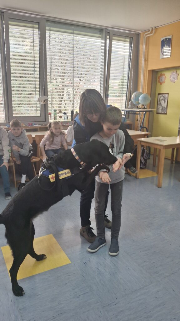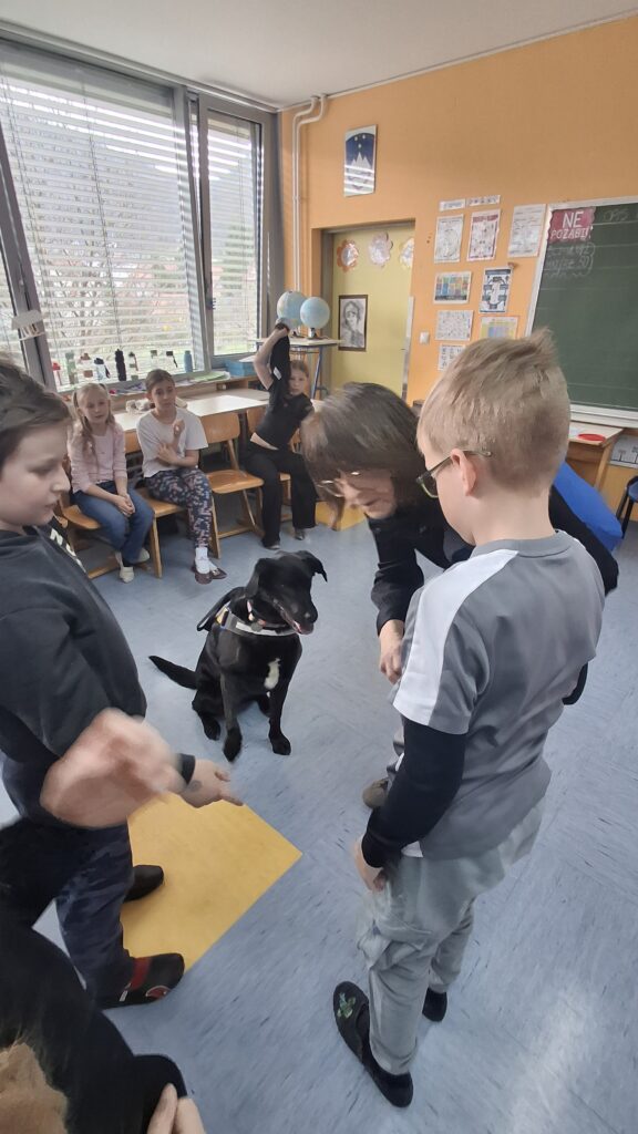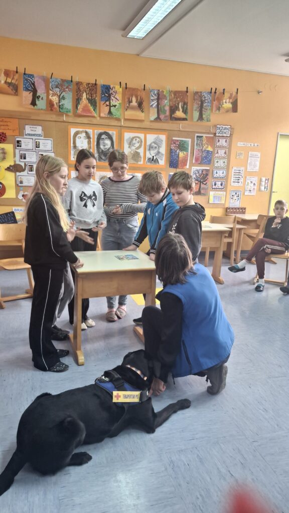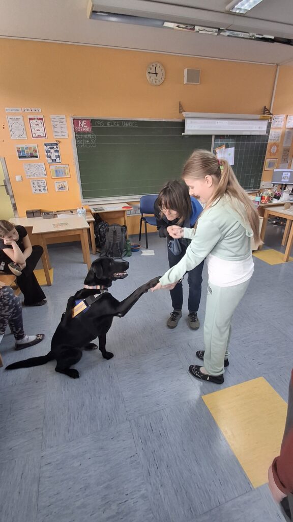 Včeraj, 12. 3. 2026, smo imeli na naši šoli prav poseben obisk. V 4. a razredu nas je obiskal terapevtski par, ga. Janja Brglez in njena psička Luna, ki sta vključeni v prostovoljno društvo Tačke pomagačke. V uvodu ure smo spoznali pasji bonton, kako se primerno približati psičku, kako ga pobožati in zanj ustrezno poskrbeti. Luna je zelo prijazna, igriva, radovedna in delovna psička, zato smo jo lahko pobližje spoznali, jo pobožali in z njo izvajali trike. Pri urah slovenščine opisujemo živali, zato je bil obisk več kot dobrodošel. Učenci smo spoznali različne pasme psov, opisovali živali in urili spretnosti branja in pripovedovanja. Ugotovili smo, da je pes čudovit prijatelj pri branju in usvajanju snovi, saj pomaga pri sprostitvi, pozorno posluša, ne sodi, kritizira ali se smeji kot vrstniki in dovoljuje, da beremo in se učimo v svojem lastnem ritmu. Psi razveseljujejo, opogumljajo in motivirajo, zato bomo psičko Luno z veseljem povabili, da se nam pridruži še pri kakšni učni uri.